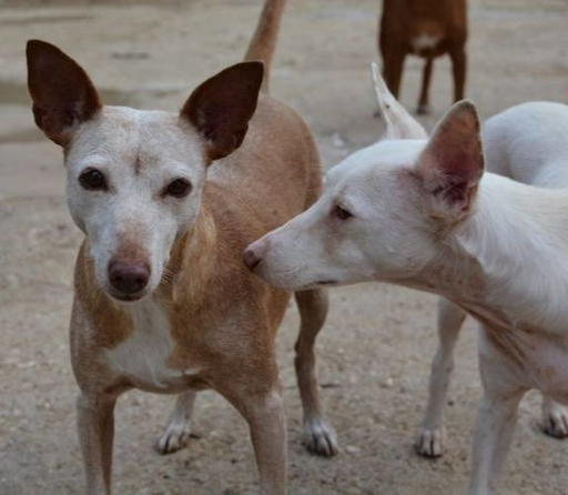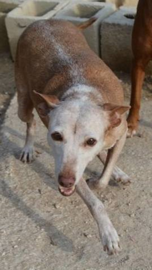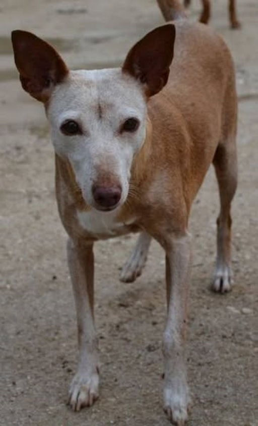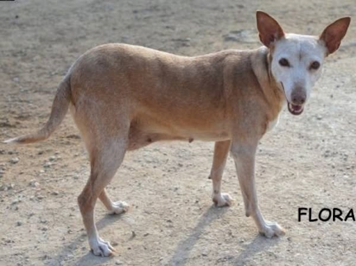 Flora kam mit zehn anderen Podencos im Tierheim Asoka an, nachdem alle ein schreckliches und grausames Leben geführt haben müssen. Flora war, wie die anderen Podencas auch, das Opfer von Züchtern, in der Welt der spanischen Jäger…die durch Gewalt und Misshandlung benutzt wurden, um Welpen zu produzieren. Flora lebte mit mehr als fünzig Hunden zusammengepfercht unter erbärmlichen Bedingungen und in Gestank und Dreck zusammen. In diesem Verließ wurde ununterbrochen gezüchtet; es gab Kämpfe; keine Hygiene oder Pflege geschweige denn eine angemessene tierärztliche Betreuung.