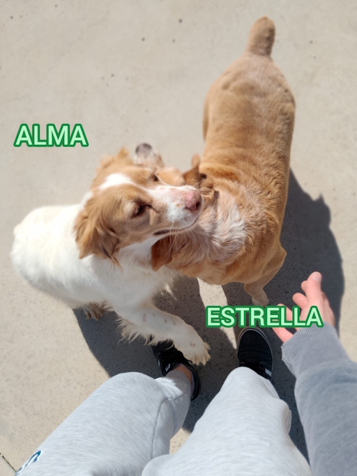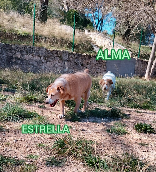 Alma ist mit ihrer Freundin Estrella bereits zwei Tage auf dem Berg Preventorio herumgestromert; bis sie einem Mädchen mit ihrem Hund hinterherrannten und mit ihnen spielte. Das Mädchen lockte sie mit Leckerlies und brachte sie dann zum Tierheim. Alma ist eine großartige Hündin; sie ist fröhlich, lustig, kontaktfreudig und sehr anhänglich. Sie liebt es mit anderen Hunden zu spielen; folgt aber immer ihrer besten Freundin Estrella. Estrella ist ein sehr freundlicher und geselliger Hund. Sie kommt gut mit Rüden und Hündinne zurecht und sie liebt es, gestreichelt zu werden. Spaziergänge in ländlicher Umgebung ist eines ihrer absoluten Highlights. Alma, ihre wirklich absolut beste Freunding und treue Begleiterin von Anfang an; mit der sie durch schlimme Zeiten hindurch gegangen ist und gemeinsam den Start in ein neues und schönes Leben durch die Rettung von den Tierschützern begonnen hat, ist immer an ihrer Seite. Aus diesem Grund werden die beiden besten Freundinnen auch nur zusammen vermittelt. Eine Trennung würden beide nicht aushalten.