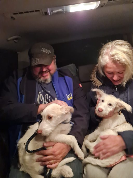 Als wir die zwei zuckersüßen Welpen zur Vermittlung aus Spanien bekamen, war die Freude natürlich erstmal riesengroß. Doch mit der Zeit wurde klar, sie zusammen zu vermitteln, war fast unmöglich und wir wollten sie unbedingt nach Deutschland holen um der Vermittlung bessere Chancen einzuräumen.