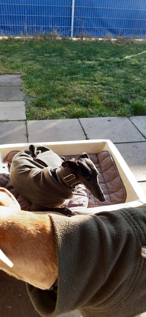 Nina (geb. ca. 15.01.2016) wurde in Spanien von ihrem Jäger im Tierheim Kimba abgegeben. Sie ist eine zarte, sensible Galga, noch zu dünn und von vielen Narben gezeichnet – trotzdem freundlich, klar und voller Lebenswillen. Auf der Pflegestelle hat sie sich schnell eingelebt, ist sportlich, läuft traumhaft an der Leine und genießt Waldspaziergänge ebenso wie entspannte Stunden auf dem Sofa. Menschen liebt sie sehr, Umweltreize machen ihr kaum etwas aus; bei Hundebegegnungen braucht sie manchmal etwas Sicherheit.
